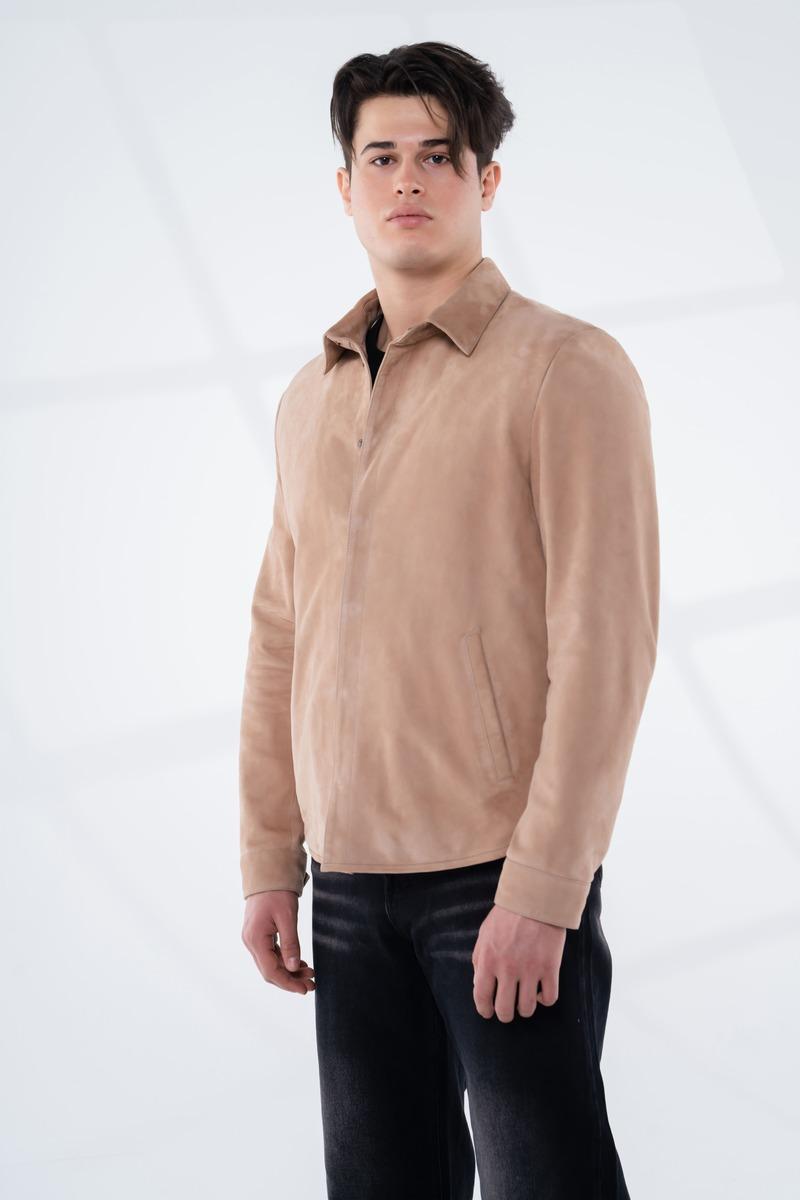 Hem klasik hem de modern bir parça arayanlar için Bej Renkli Modern Süet Deri Gömlek, sofistike bir görünüm sunuyor. Yüksek kaliteli süet malzemesi ve dikkat çekici bej rengi ile bu gömlek, her ortamda şıklığınızı ön plana çıkaracak.