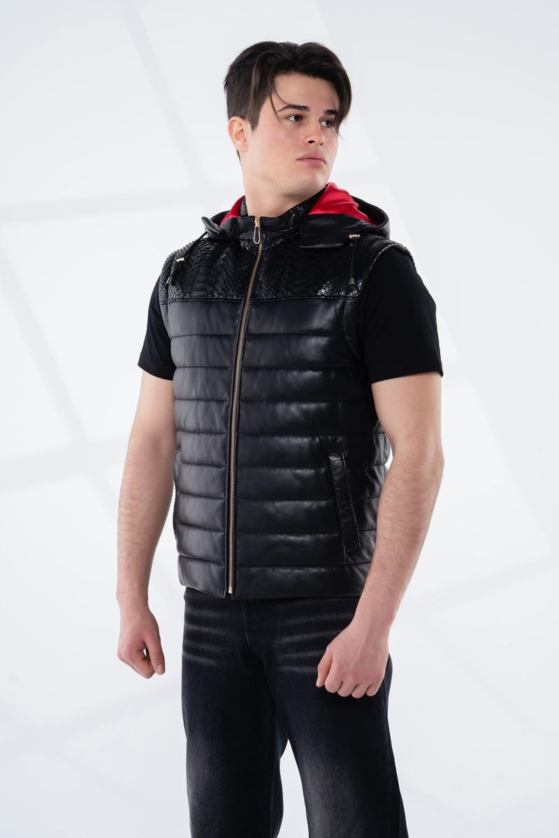 Bu eşsiz piton detaylı deri yelek ile tarzınızı ve kişiliğinizi yansıtın. Şimdi sipariş verin ve gardırobunuza sofistike bir dokunuş katın!