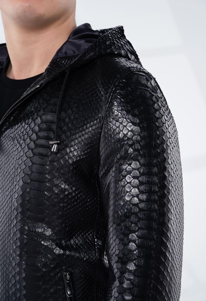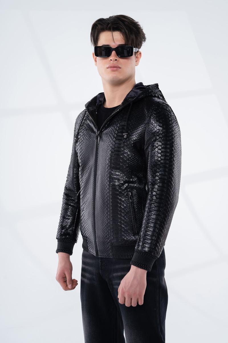 Bu siyah kapüşonlu piton derisi ceket ile her adımda şıklığı ve konforu bir arada yaşayın. Hem günlük stilinizi yükseltin hem de soğuk havalarda sıcak kalın. Şimdi sipariş verin ve gardırobunuza lüks bir dokunuş katın!