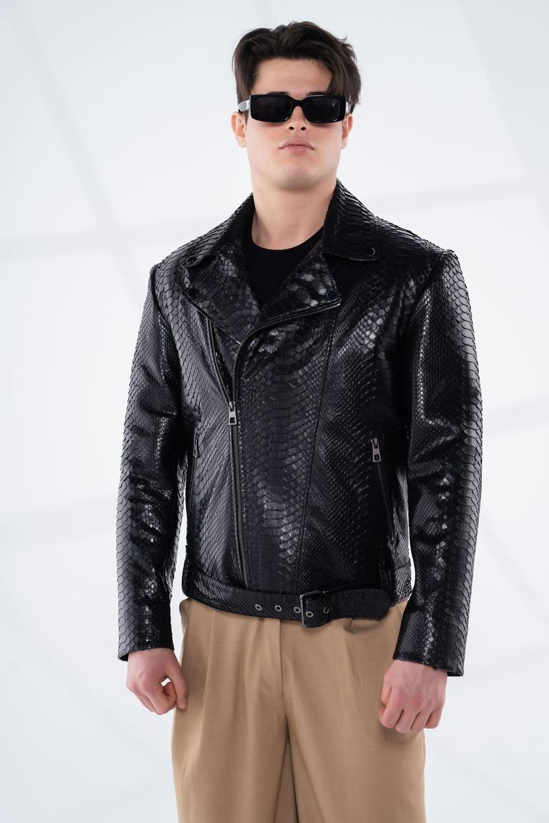Bu eşsiz siyah piton derisi ceket ile stilinizi ve özgüveninizi vurgulayın. Şimdi sipariş verin ve gardırobunuza sofistike bir dokunuş katın!