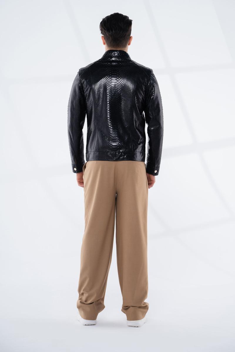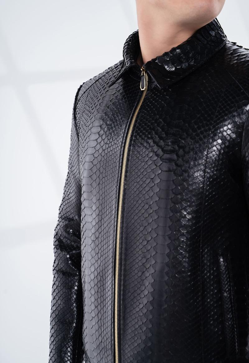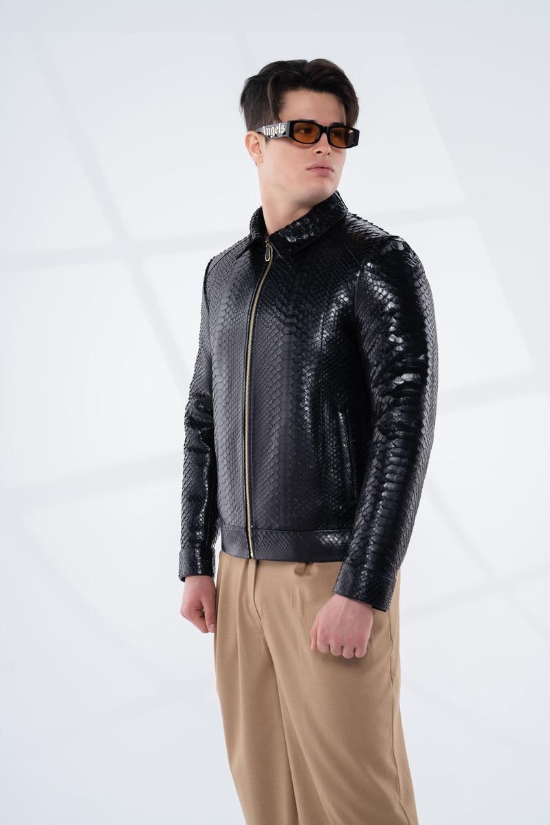 Bu eşsiz siyah pullu piton derisi ceket ile stilinizi ve özgüveninizi yansıtın. Şimdi sipariş verin ve gardırobunuza sofistike bir dokunuş katın!