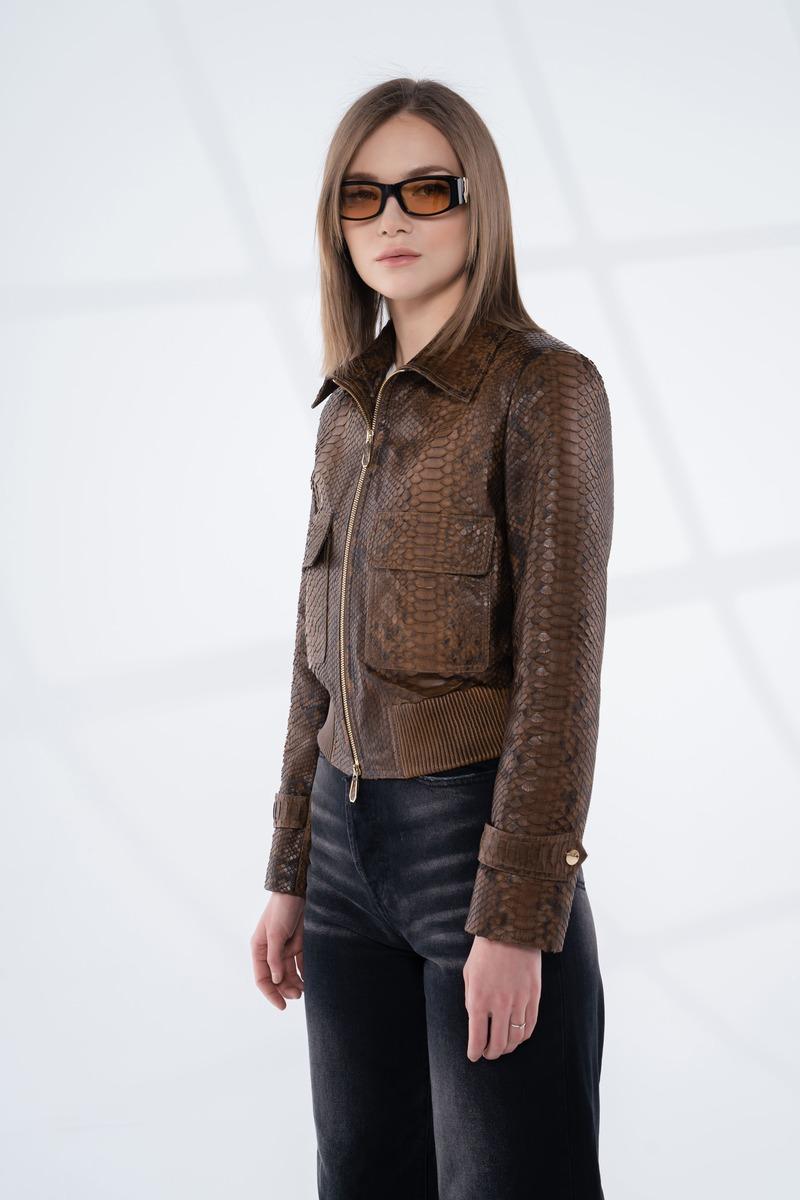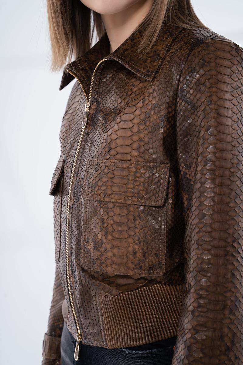 Bu özel kahverengi piton derisi ceket ile tarzınızı ve özgüveninizi vurgulayın. Şimdi sipariş verin ve gardırobunuza sofistike bir dokunuş katın!