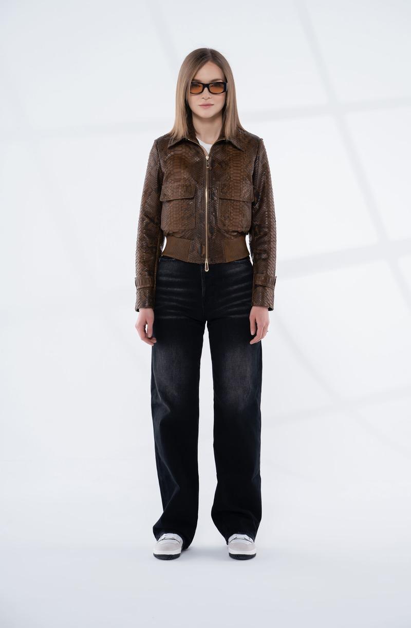 Kahverengi Piton Derisi Ceket ile zarafet ve şıklığı bir arada yaşayın. Yüksek kaliteli piton derisi ve modern tasarımı ile bu ceket, stilinizi tamamlayacak benzersiz bir parça.